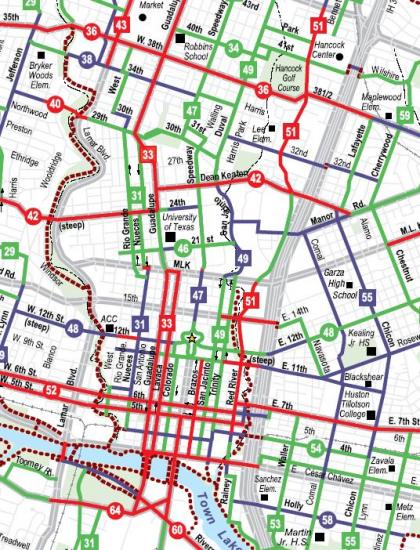 Find your way around Austin city streets on two wheels with an Austin Bicycle Map from the City of Austin Bicycle Program. Integrating Bicycles into the Transportation System. An excellent resource for map and bike people! Easy to carry and reference, or hang on your wall.