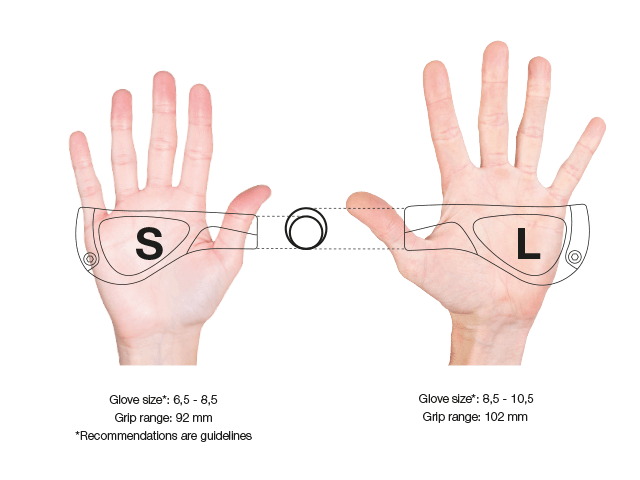 In order to help you maintain perfect control over your bike, your hands should not completely envelop the grip, which is why Ergon offers many grips in two size diameters – Small and Large. The difference refers to the grip width (hand size), meaning a larger hand will have a more positive fit on a thicker grip, while a smaller hand is better fit to a smaller grip. For hand/glove sizes 6.5 to 8.5 we recommend Small, for 8.5 to 10.5 Large usually is better.
