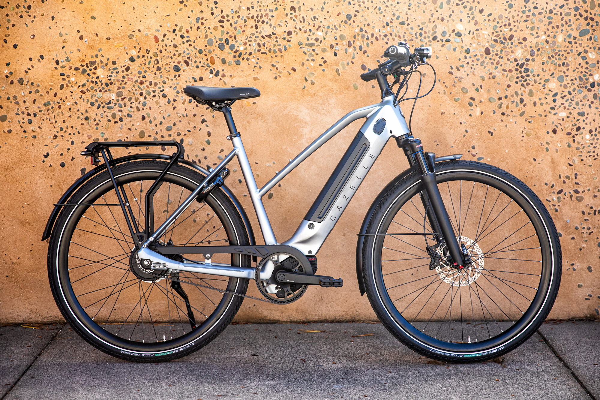 Gazelle electric bikes make cycling practical and awesome!  Like its light and powerful namesake, Gazelle e-bikes help you dash off to the shops, arrive at work relaxed or whiz up a hill with power to spare. The powerful Bosch Performance Line motor enables you to ride through hilly terrain with ease. Its dynamic drive impresses with high-performance support: from flat to steep, from asphalt to trail. The large battery capacity gives riders a range of over 80 miles on one charge, while the use of high-grade components gives you the assurance of the best quality.