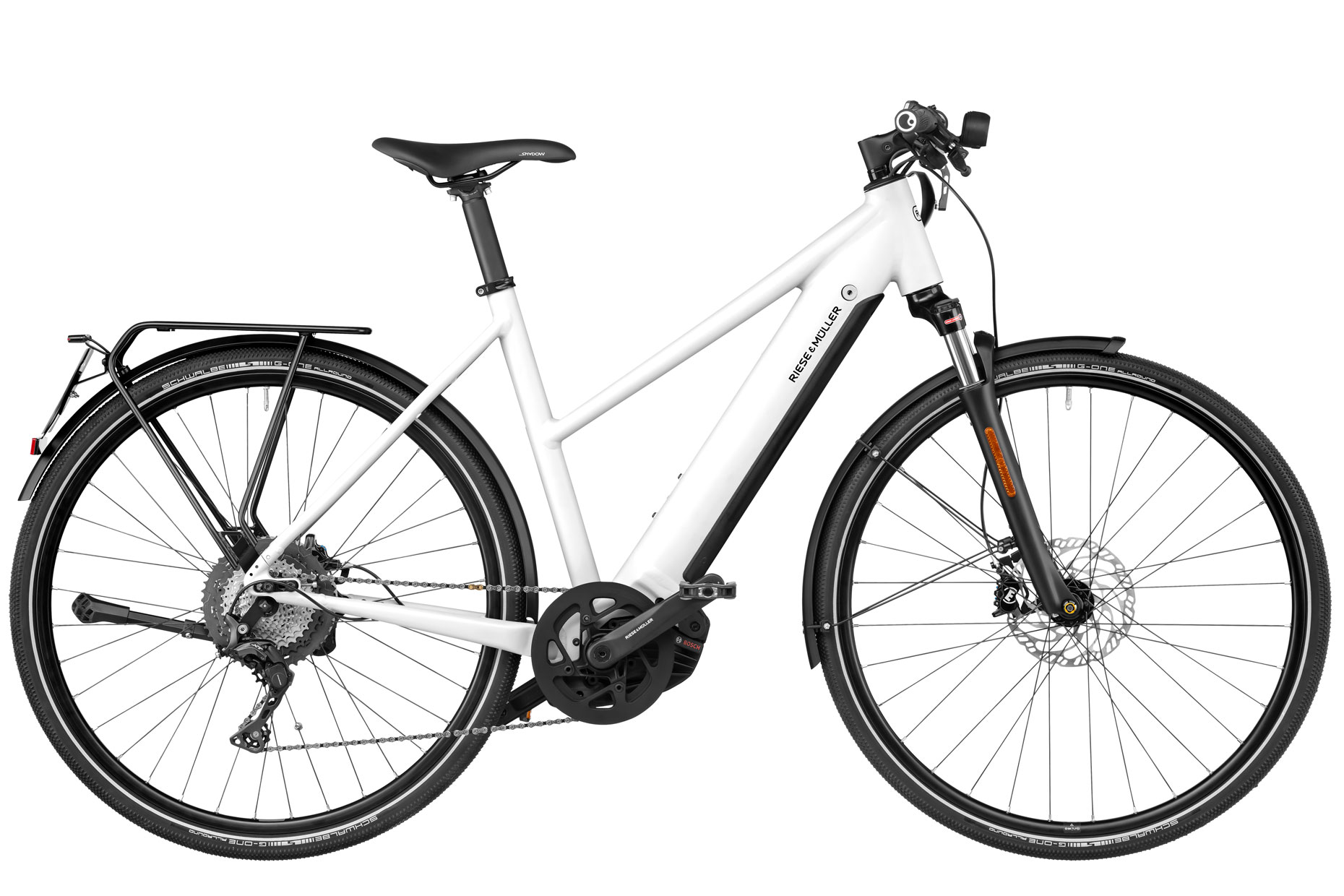The Riese and Muller Roadster Mixte was made to tackle fast-paced city life. Thanks to the slightly lowered top tube, you can swing elegantly onto your bike and ride past everyone effortlessly with a battery capacity of 625 Wh and top speeds of 28mph with pedal assist. Its optimum weight distribution also makes it extremely agile and safe to handle. This sportiness, combined with comfortable features, makes the Roadster Mixte the ideal urban bike.