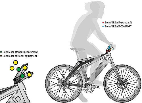 Individual sitting position: For the ST3, in addition to the Sport and Comfort frame in various sizes we have also developed two different stems (Urban and Urban Comfort).  You can freely combine these components so that you can enjoy the unique Stromer riding experience in a sitting position that is perfect for your body size.